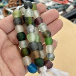 Approximately 18 beads per strandApproximately 12mm Beads sizes will vary since they are recycled glass2 colors are available (mixed, light seafoam)Please select color on the notes section when placing your order.